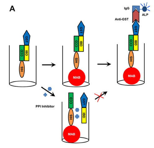 a)GST-IBD與His-CCD置于微孔板中孵育結(jié)合,形成PPI復(fù)合物