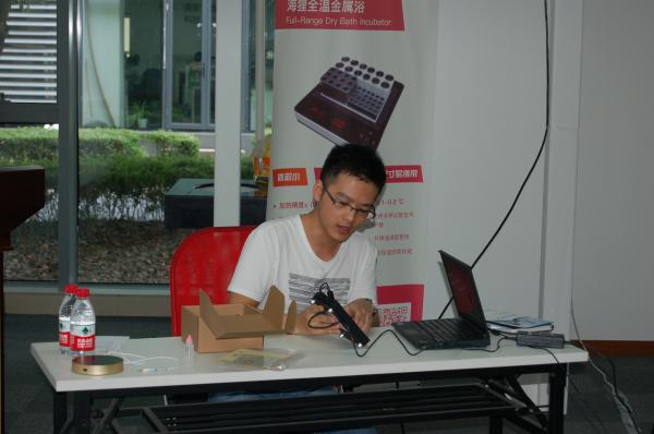 海貍高級產(chǎn)品經(jīng)理董友玉為大家介紹了海貍?cè)珳亟饘僭〉漠a(chǎn)品性能、應(yīng)用領(lǐng)域以及市場優(yōu)勢等等。海貍開發(fā)的這款金屬浴具有體積小、重量輕、溫控性能好等特點(diǎn),可以解決實(shí)驗(yàn)室儀器擁擠,便于在超凈工作臺和潔凈實(shí)驗(yàn)室使用。經(jīng)過董經(jīng)理深入淺出的介紹,大家對產(chǎn)品有了深入了解,對今后的營銷有了新思路。大家給予了董經(jīng)理雷鳴般的掌聲。